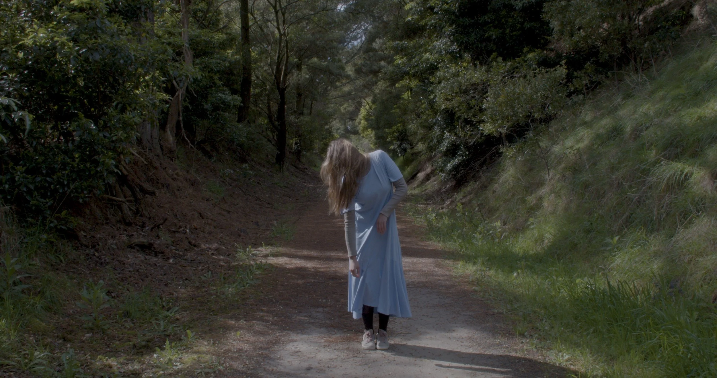 Dance Track is a video taking place on The South Gippsland Rail Trail, a natural highway connecting towns and the community . The video, filmed in slow motion, depicts a dancer improvising a choreography in response to the environment. This was filmed in single take in 2022.